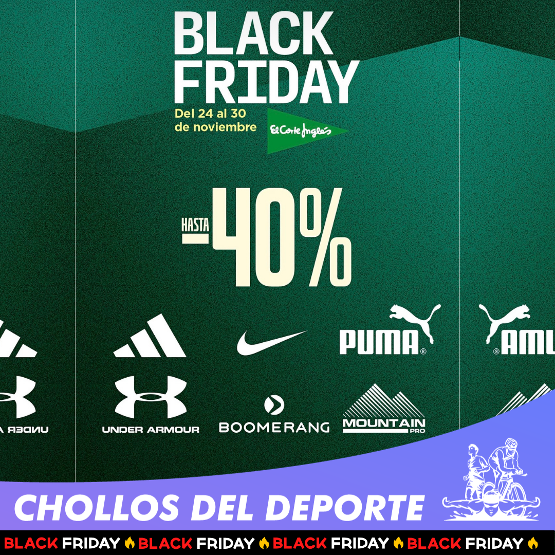 🙋♂️ Hola choller@s, No te pierdas el Black Friday en El Corte Inglés! Del 24 al 30 de noviembre, aprovecha descuentos de hasta el 40% en las mejores marcas deportivas como Adidas, Nike, Puma, Under Armour, Boomerang y Mountain Pro.…